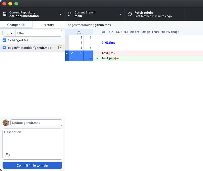 Je kunt de documenten online in de github web-omgeving editten, maar door de Github-app te gebruiken voorkom je dat je per wijzigingen eerst verificatie moet vragen aan een andere gebruiker met de juiste rechten.